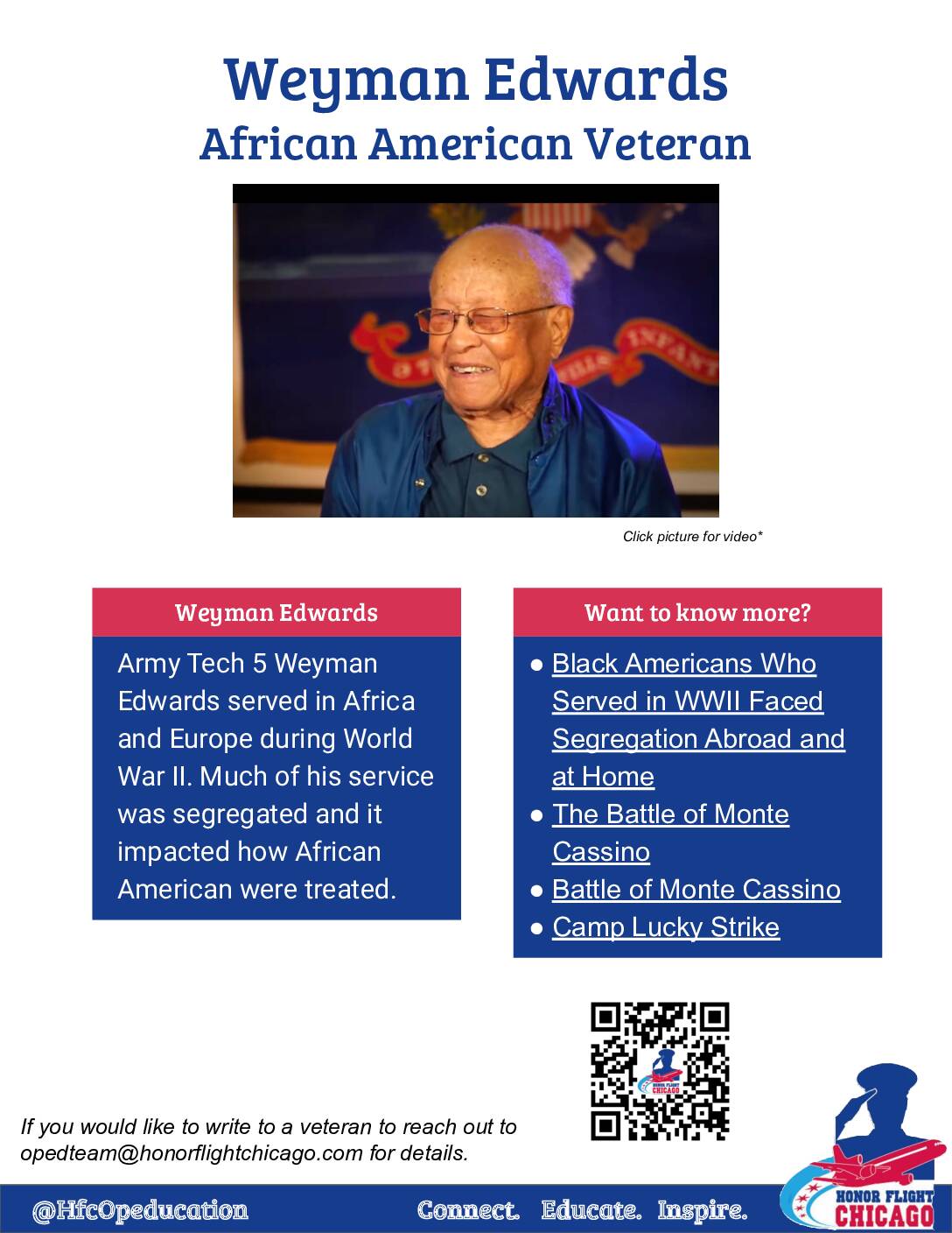 Army Tech 5 Weyman Edwards served in Africa and Europe during World War II. Much of his service was segregated and it impacted how African