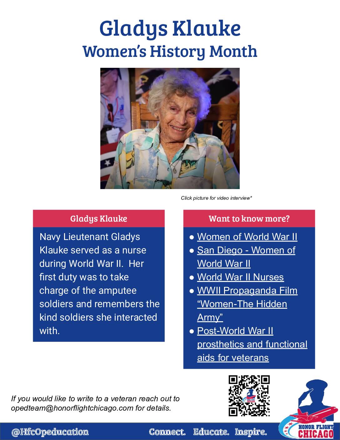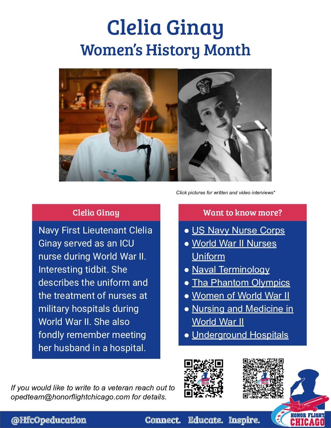 For Women’s History Month, Honor Flight Chicago is proud to share the following stories of woman veterans. We are proud to have flown hundreds of women heroes on their Day of Honor during our history. We hope that in sharing these stories we inspire you to learn more about their history.